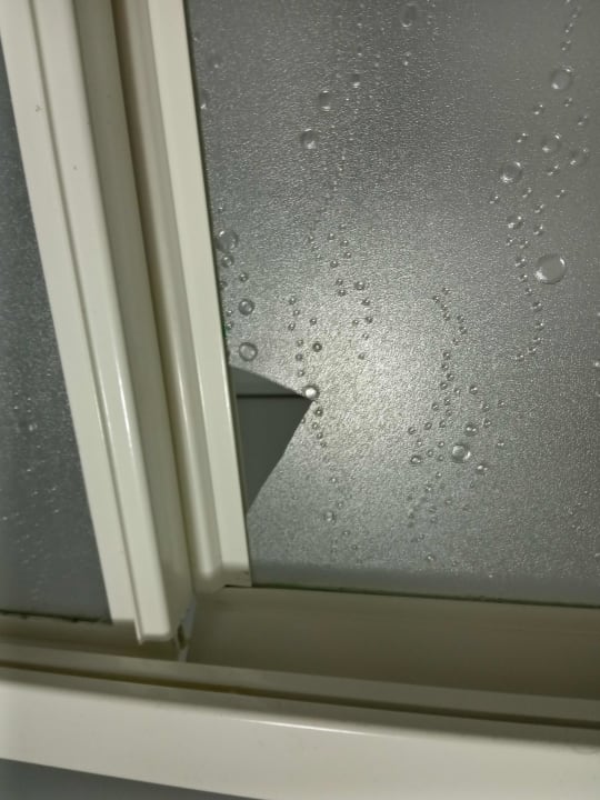 ZimmerDuschkabine.Kunststoff ausgebrochen und nach dem Duschen dadurch eine mega Pfütze davor