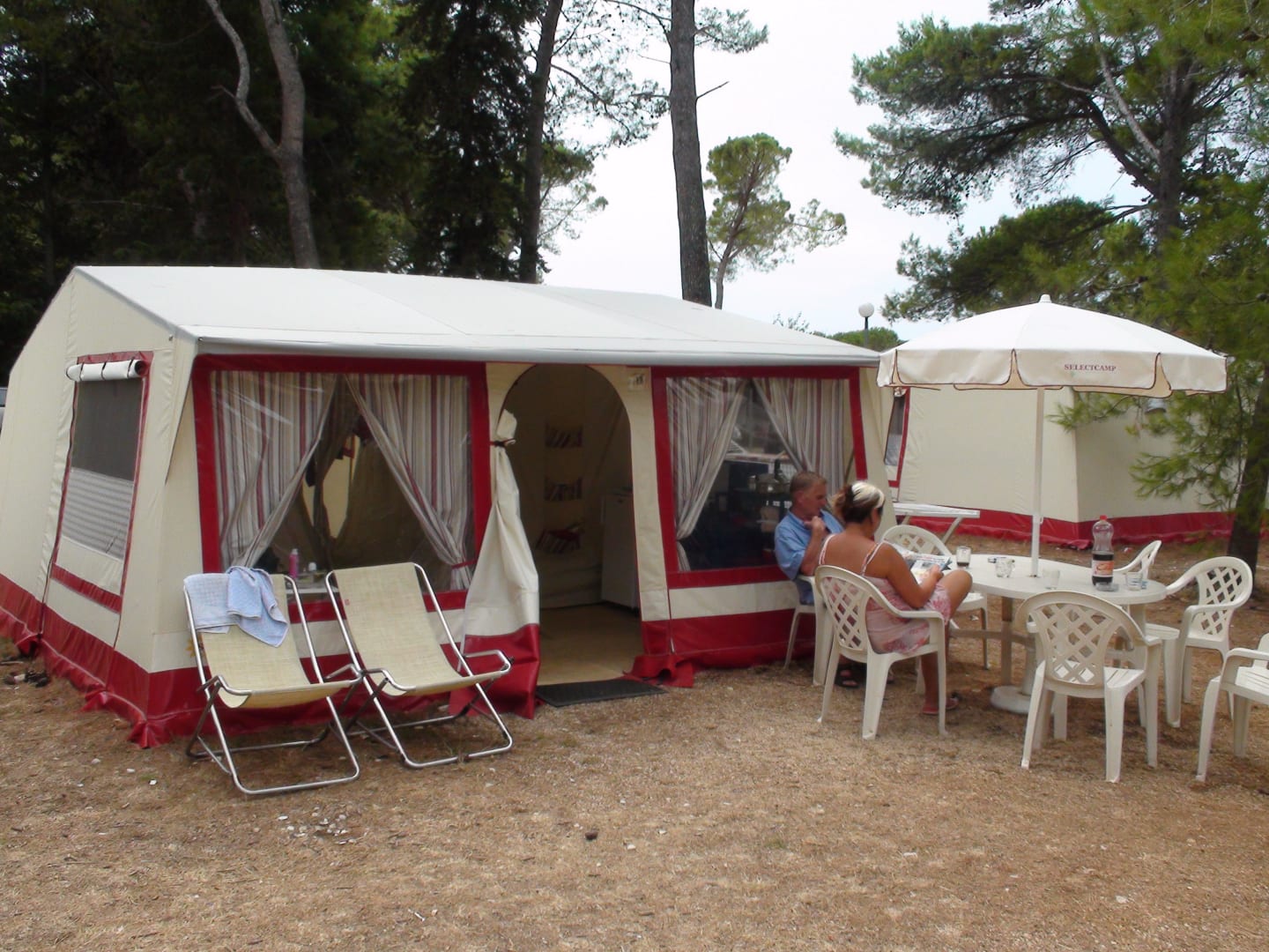 Ein von uns gebuchtes Selectcamp Zelt. Fertig eingerichtet mit Kühlschrank und Gasherd