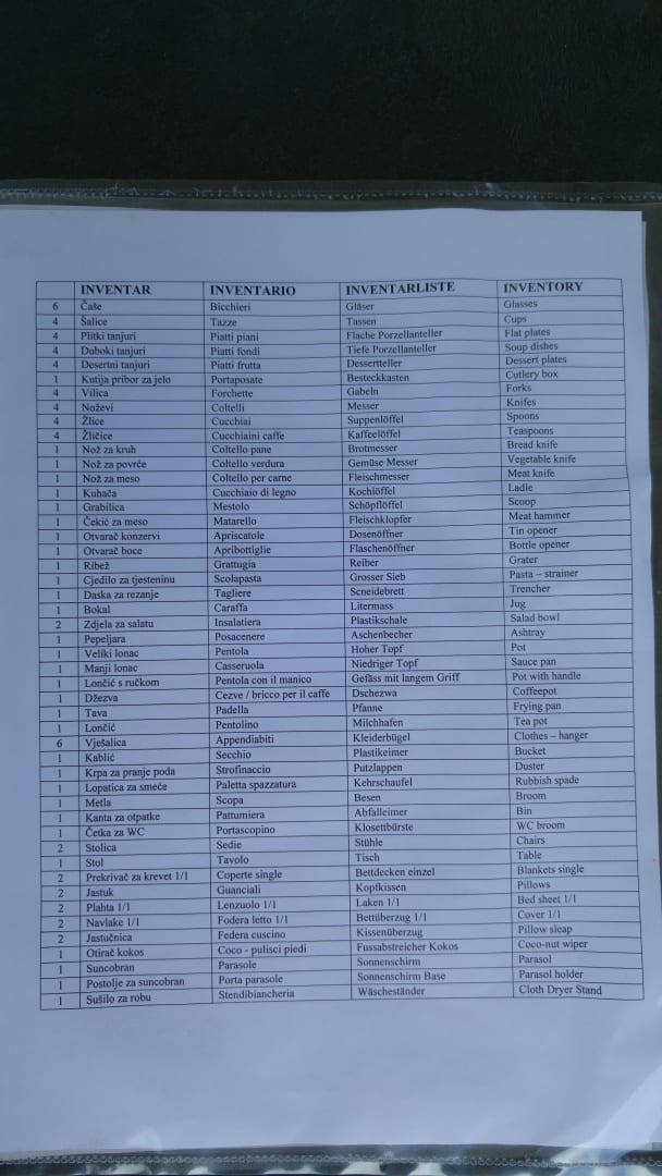 Inventarliste des Mobil Home´s