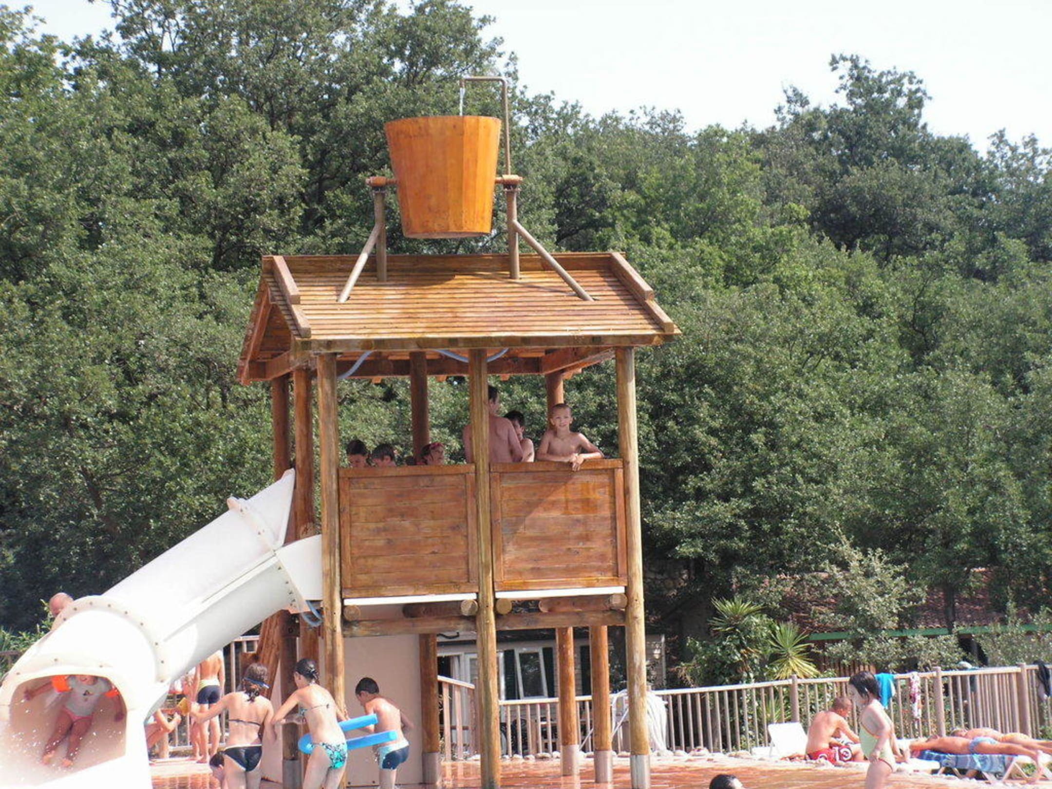 Der Eimer oben auf dem Dach hat sich im laufe des Tages mehr mals langsam gefüllt und dann ist er so langsam durch das Gewicht umgekippt. Die großen und kleinen Kinder hatten viel Spaß dabei.