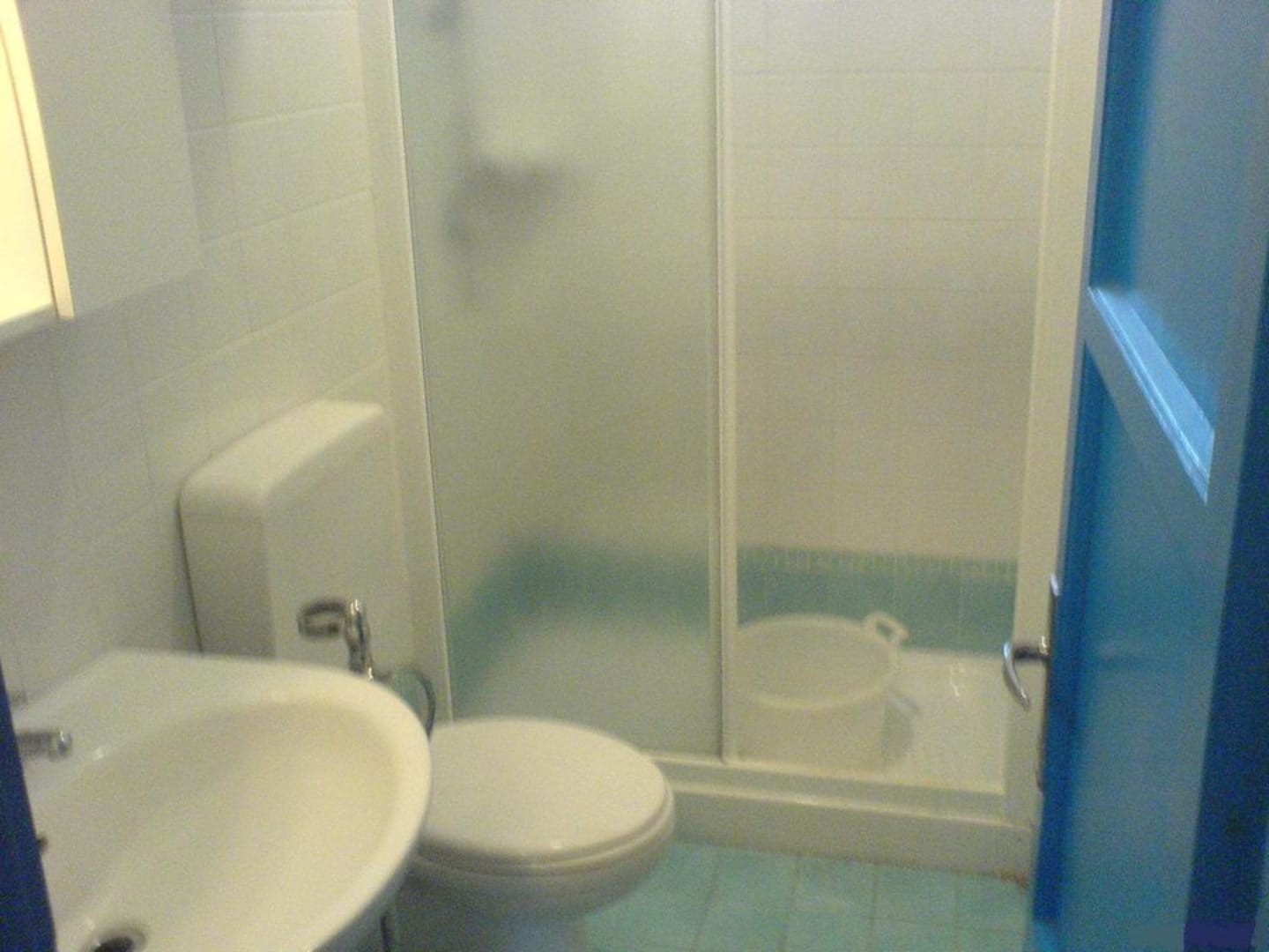 Dusche, Toilette, Waschbecken.