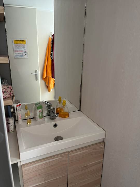Lavabo und Spiegel neben der Dusche, ebenfalls sehr Sauber