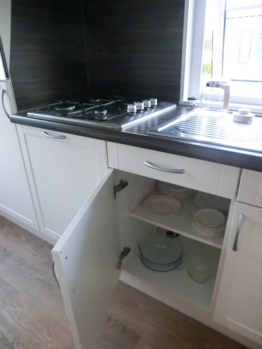 Küchenzeile mit Geschirr, nicht alles zu sehen ...