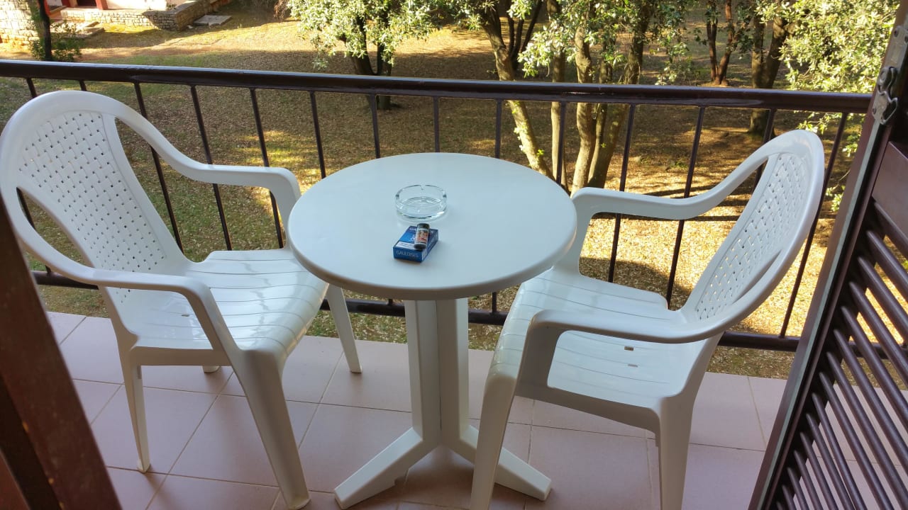 Balkon mit Tisch und Sessel