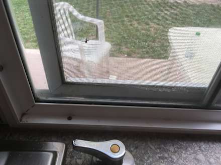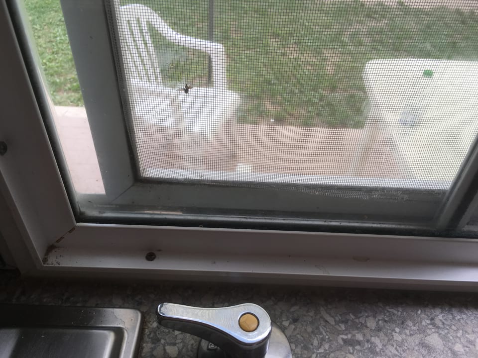 Defekte Fenster und Fliegengitter. Zahlreiche Mückenstiche können nicht verhindert werden