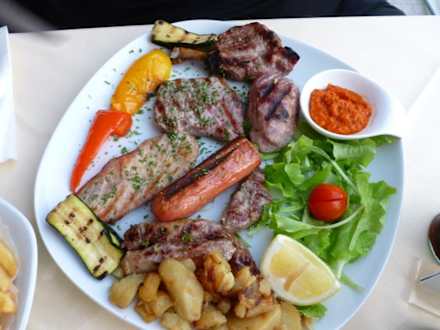 Grillteller vom Restaurant "Riviera"Sehr lecker und für den Preis (20,50 €) eine große Auswahl an Fleisch.