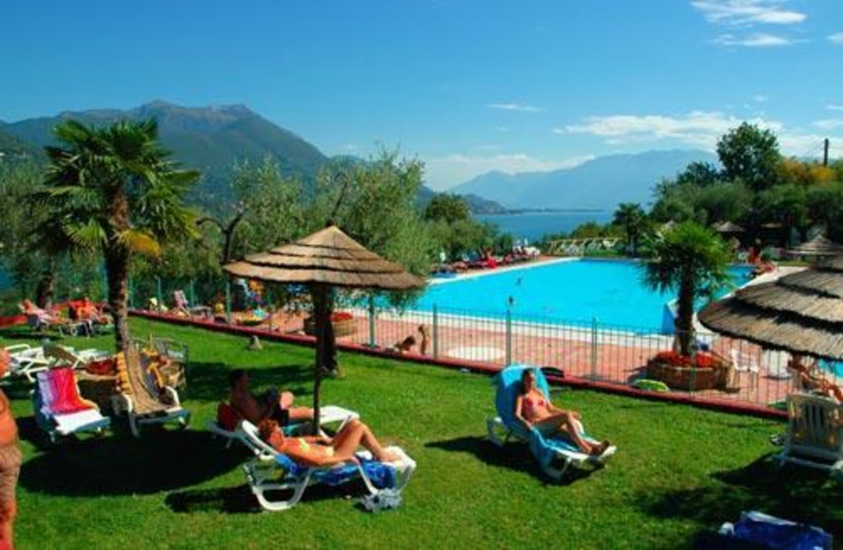 Die Liegewiese mit Blick auf den Pool und Gardasee