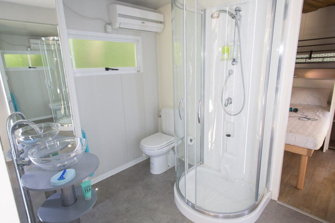 Glamping Hybridlodge Badezimmer