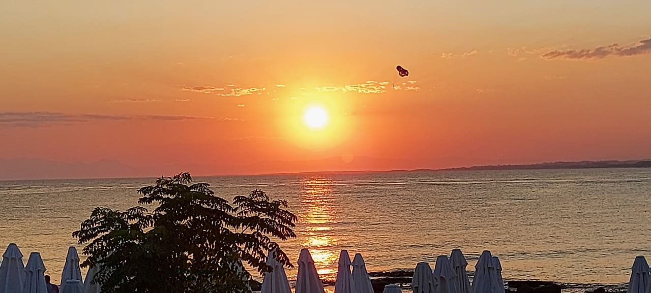 Ausblick beim Abendessen Sonnenntergang und Strand