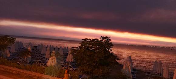 Ausblick beim Abendessen Sonnenntergang und Strand