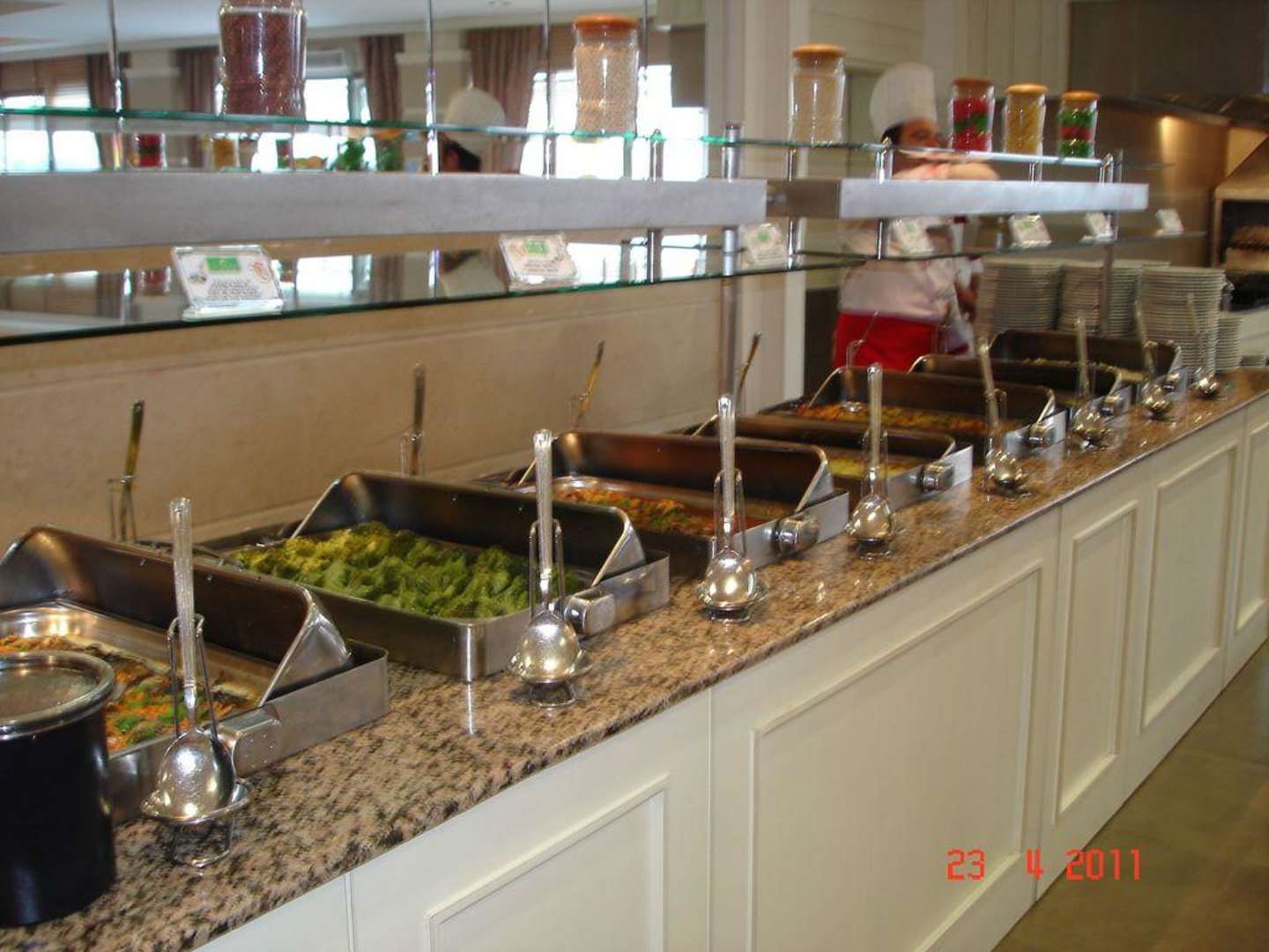 So sieht das Buffet im Restaurant mittags und abends aus (Teil der warmen Speisen)