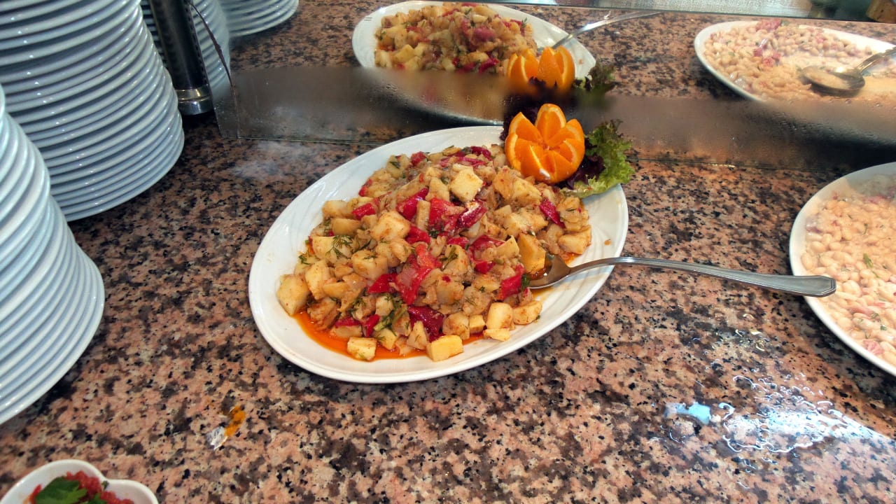 Salatbüffet 3 KartoffelsalatEs wurden auch angemachte Salate angeboten, hier eine Kartoffelsalat-Variante.