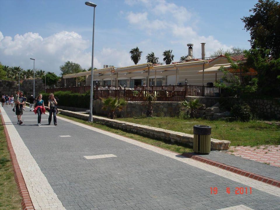 Terrasse Main RestaurantMan sieht die Terrasse des Haupt-Restaurants, mittig die Uferpromenade, links folgt direkt der Strand.