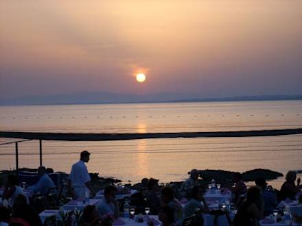 Auf der Aussenterrasse beim Essen am Strand