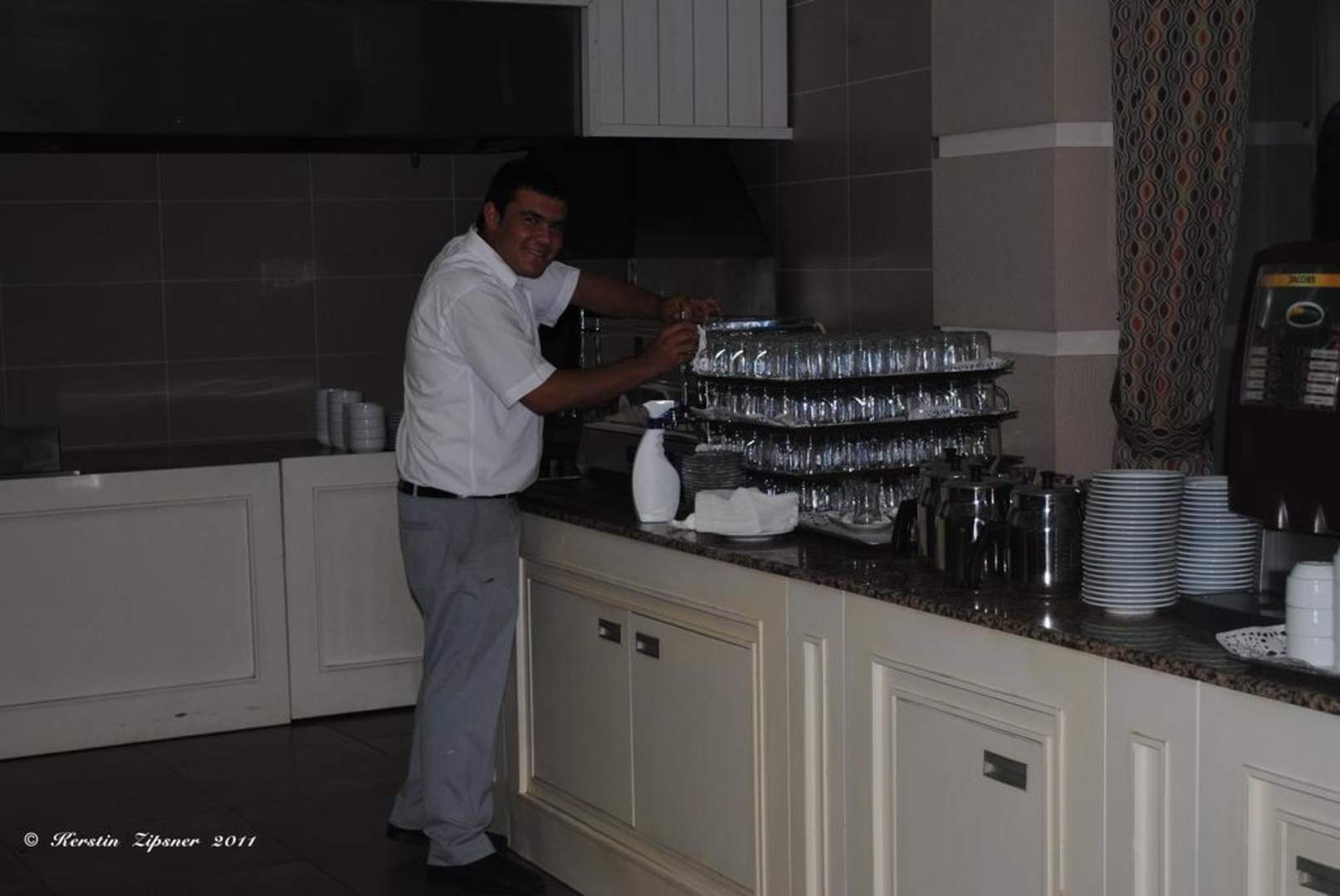 Freundliches PersonalAuch zu später Stunde, so gegen 23:45 Uhr, immer freundliches und immer lächelndes Personal beim Aufräumen im Hauptrestaurant.