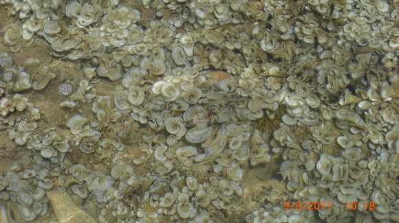 Muscheln auf den Felsen im Wasser