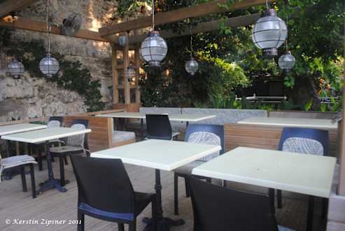 Sitzgelegenheiten im Arkendiz-Fischrestaurant