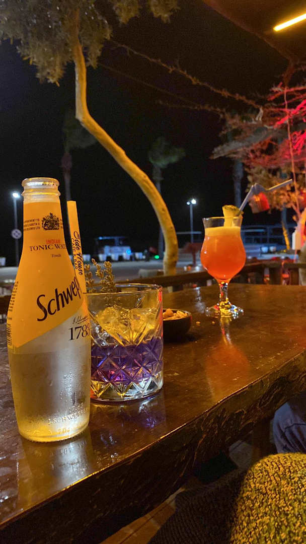 Abendliches Getränk am Hafen.