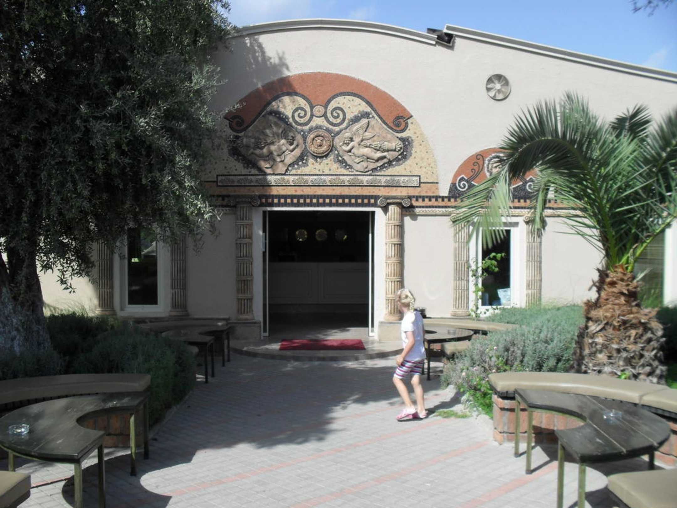 Hoteleingang (top check in & out und WLAN for free)