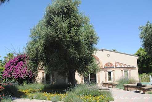 Eingangsbereich mit vielen Pflanzen und Springbrunnen