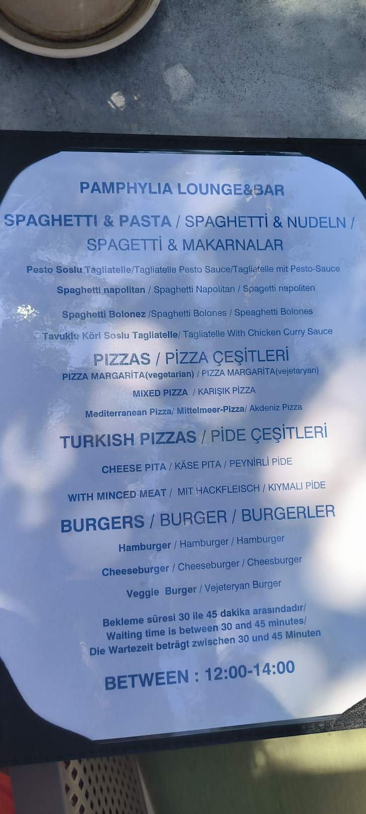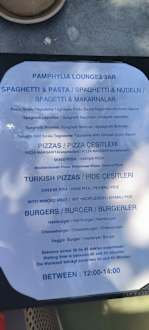 Menü Karte Pamphylia Lounge & Bar