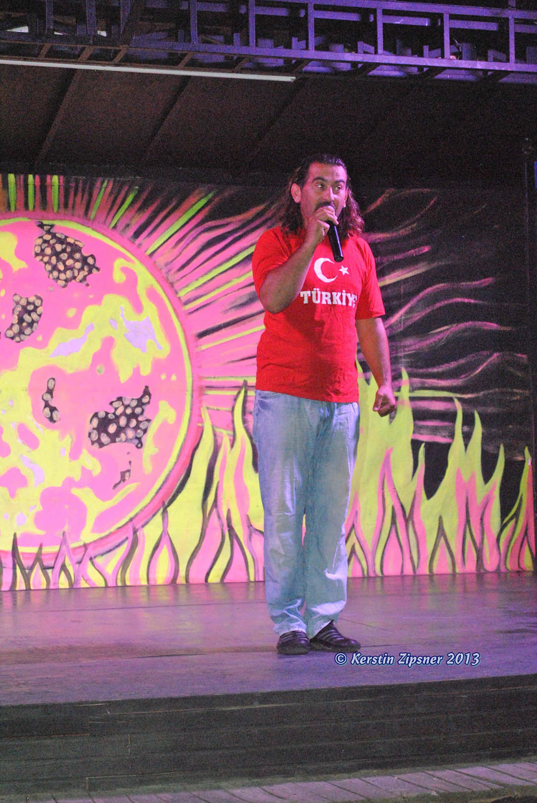 Animateur TolgaChef-Animateur Tolga bei der Ansage der türkischen Folklore-Tanzgruppe am 05.07.2013