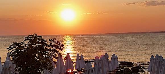 Ausblick beim Abendessen Sonnenntergang und Strand