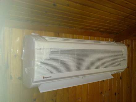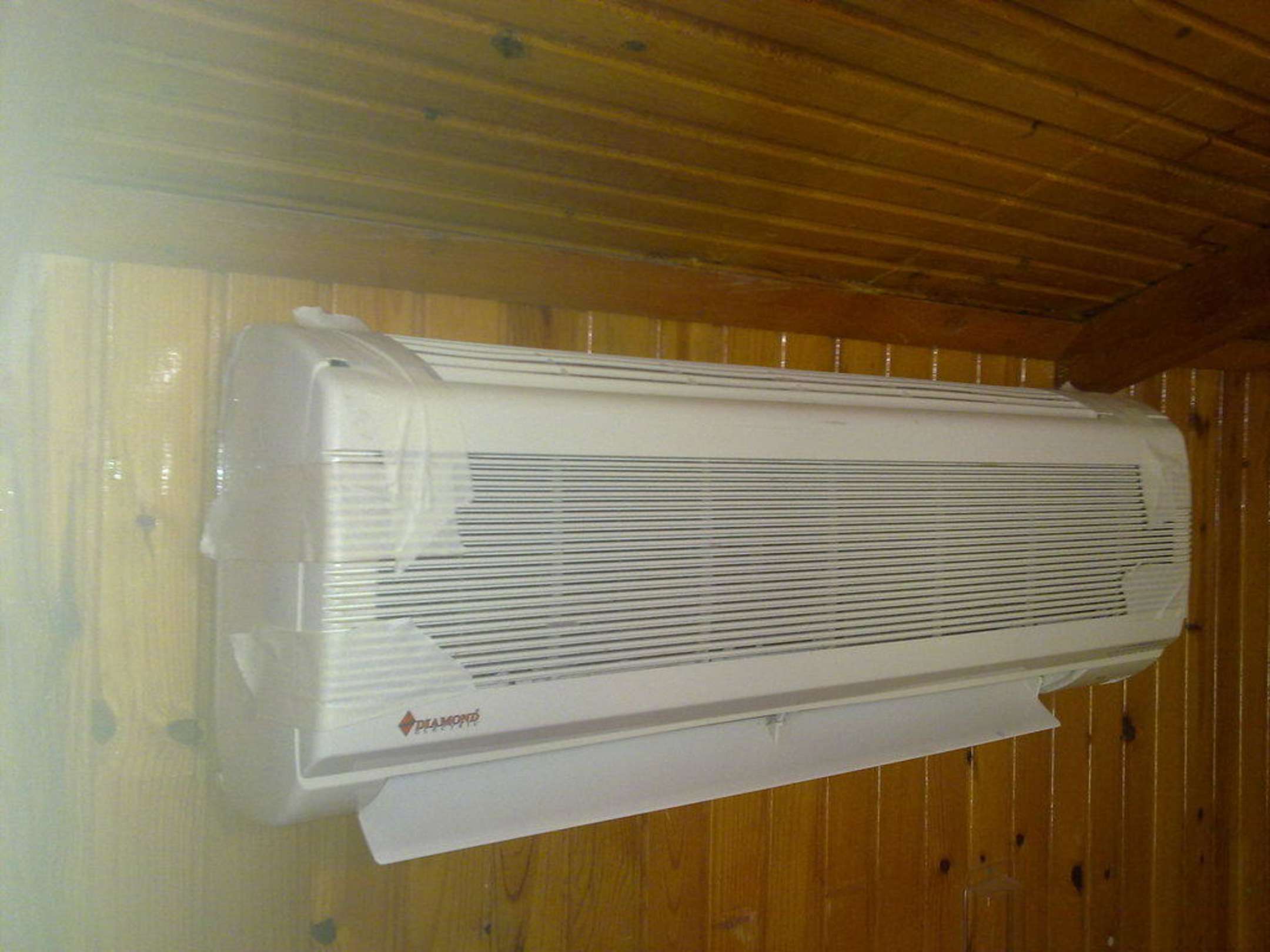 Klimaanlage über dem BettDie mit Klebeband zusammengehaltene Klimaanlage direkt über dem Kopfende vom Bett.