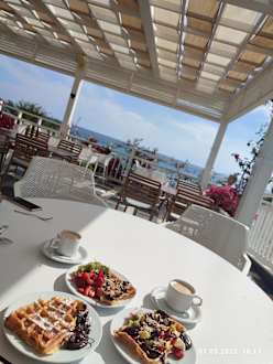 Blick Strandbar Richtung Meer und Strandabteil