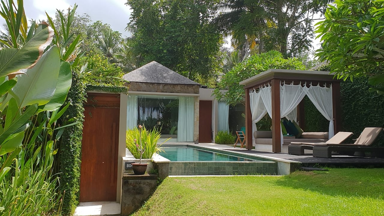 Außenansicht der Villa mit Pool