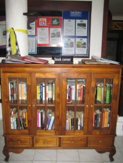 Bücherschrank"Book Corner" in der Hotel Lobby. Frei zugänglich. Bücher in vielen Sprachen vorhanden, auch in deutsch. Wenn die eigene Lektüre ausgeht findet man dort immer etwas. Eigene Bücher, die nicht wieder mit nach Hause genommen werden, können dort zur Verfügung gestellt werden