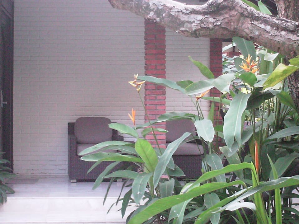 Die Sitzgelegenheit vor den Zimmern