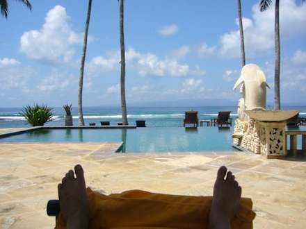myself laying on a sunbed looking over the pool in to the ocean (what a view)