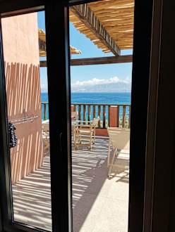 Blick vom Wohnzimmer auf unsere Terrasse