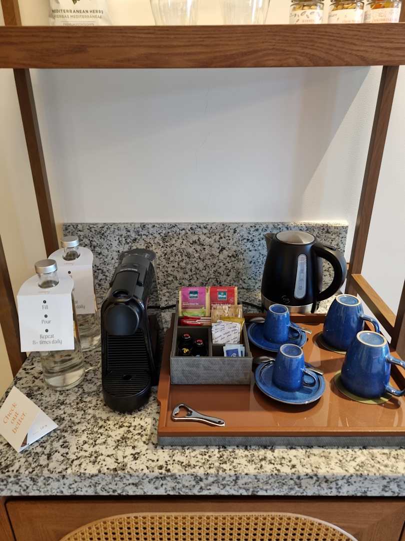 Kaffee, Tee und Wasser steht immer bereit.