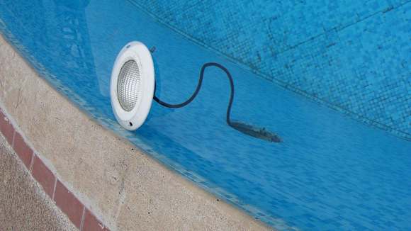 Unterwasserleuchte 1Zwei der Leuchten hiengen nur am Stromkabel im Pool.
