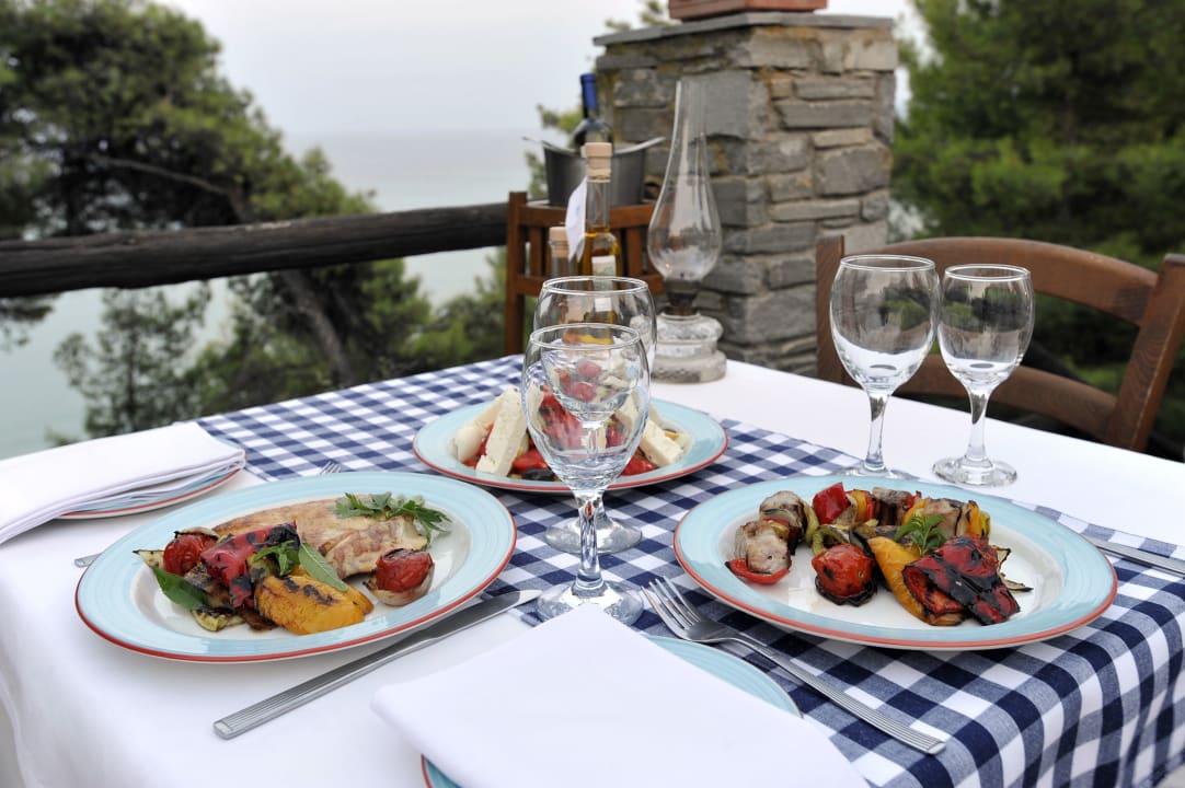 Traditionelle Taverne mit Meerblick