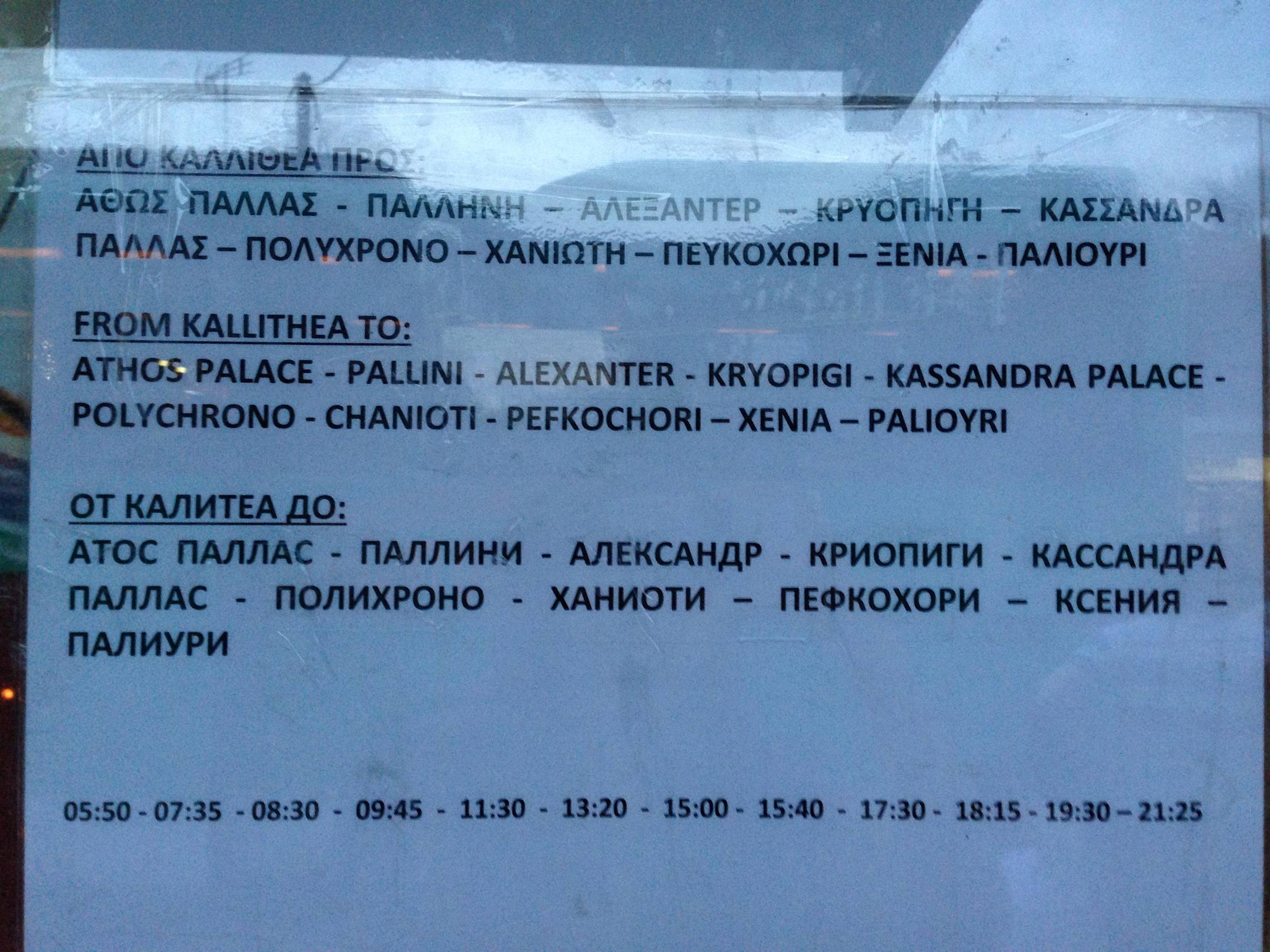 Bus timetable from Kallithea to Alexander