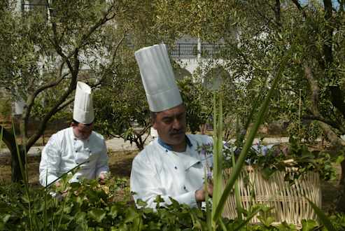 Chefs collecting fruit from the hotels gardens