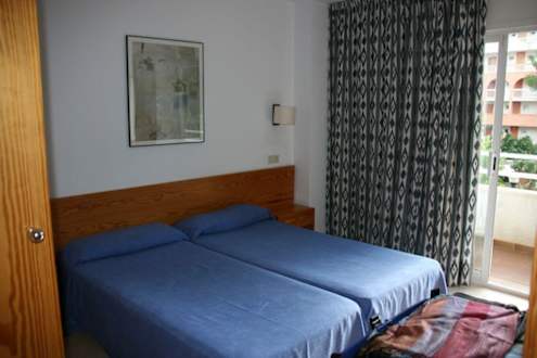 Hier sieht man das Schlafzimmer unseres Appartments (Nr. 258) ebenfalls mit Ausgang auf den großen Balkon. Im Schrank gab es einen Safe, der an der Rezeption gemietet werden konnte (pro Woche 11 Euro).
