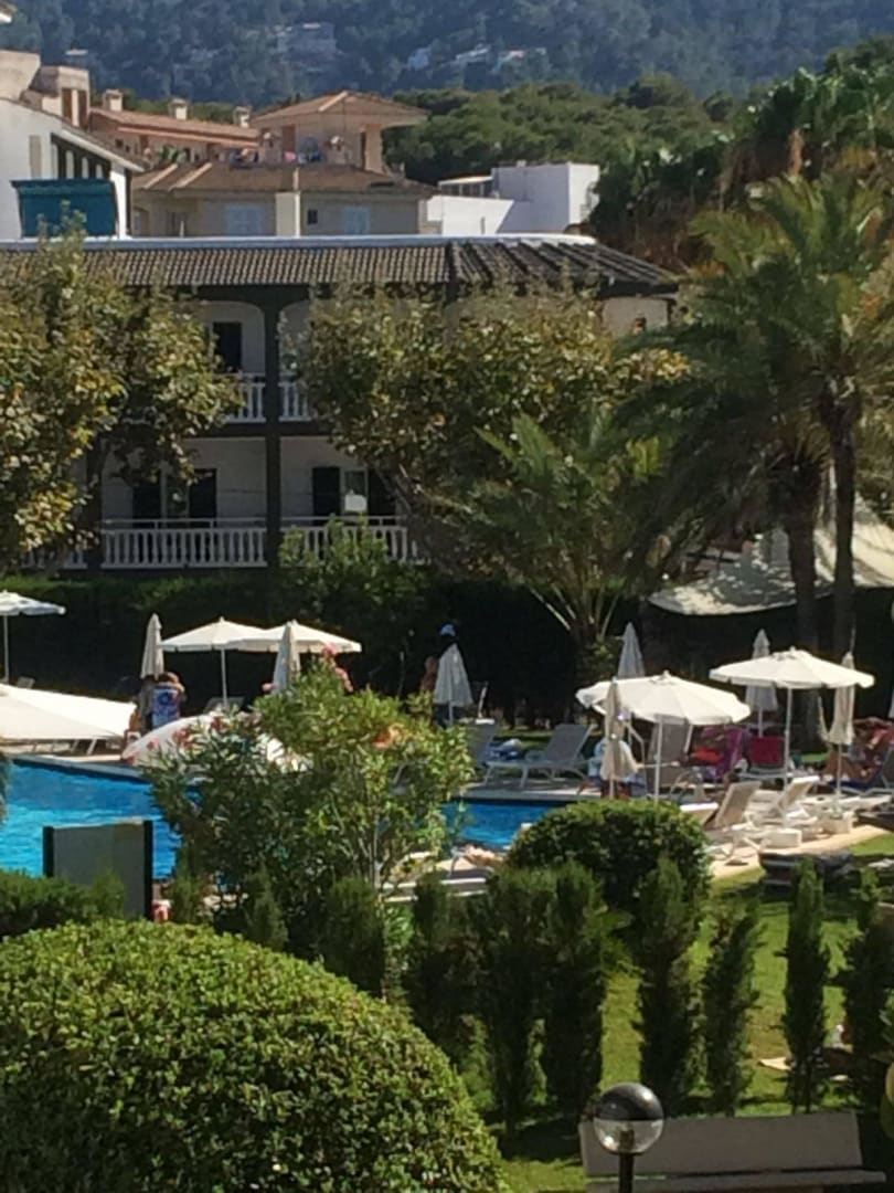 Blick vom Balkon zum Pool