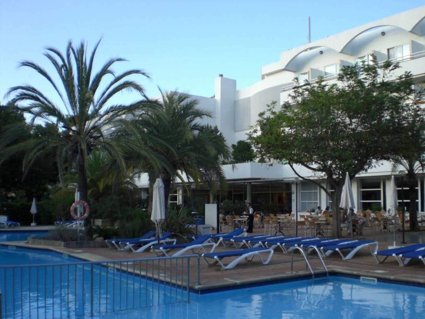 Hotel und PoolBlick vom Garten auf Pool und Hotel