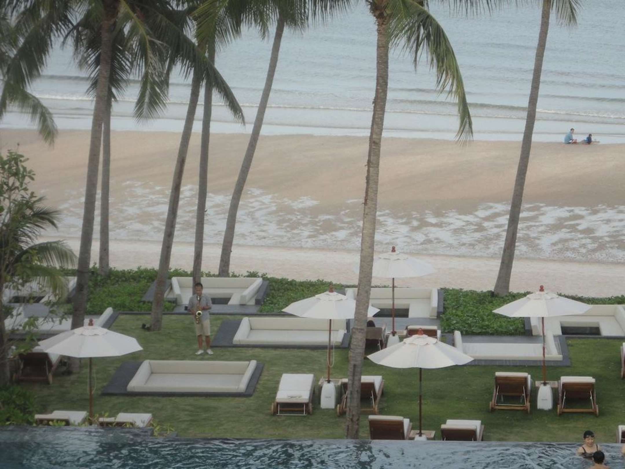 Blick vom "on the Rocks" auf Garten + Strand