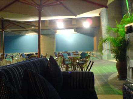 Hier sehen wir das libanesische Restaurant direkt neben dem Pool auf dem Dach des Capitol Hotels. Übrigens: auch hier draussen kühlten Klima-Anlagen die Luft (!)