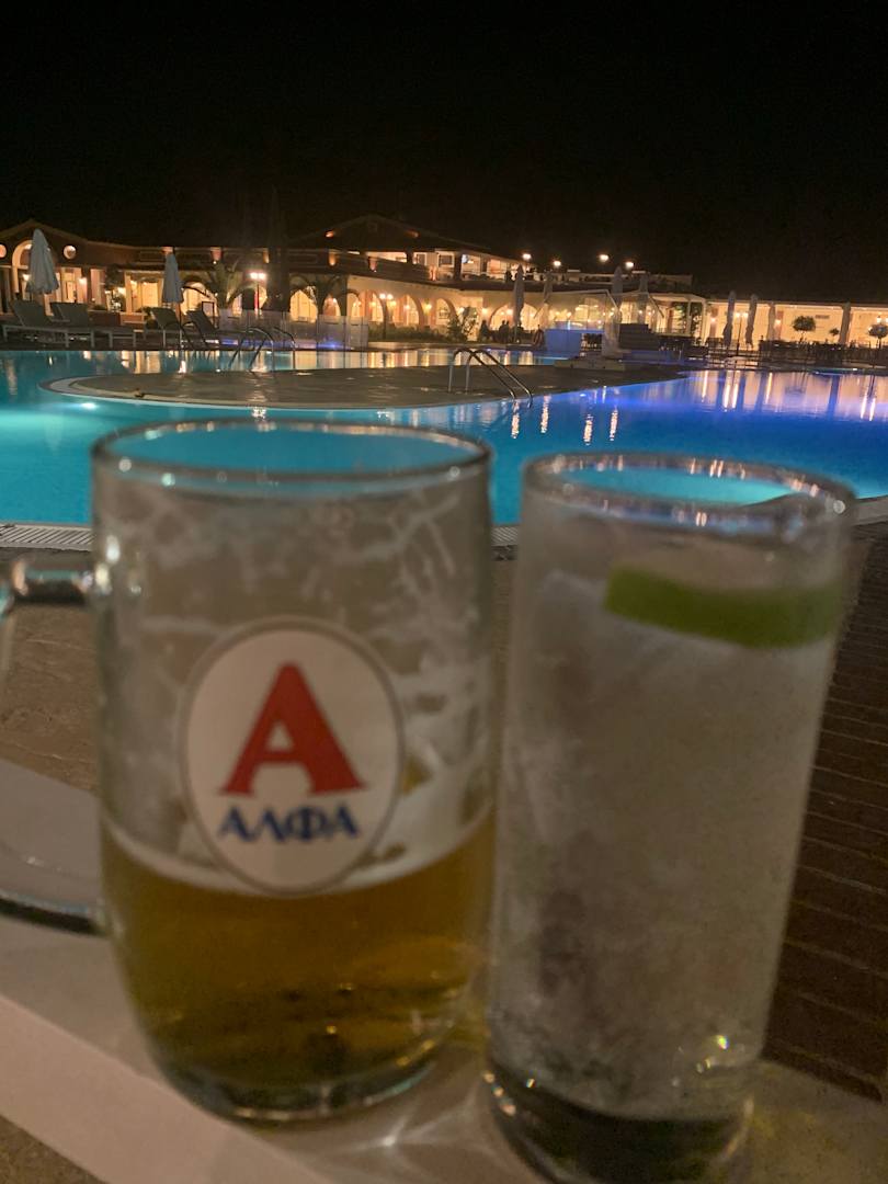 Poolbar am Abend mit Bier & Gin Tonic