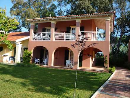 Bungalow mit ZimmernZimmer entweder mit Terrasse oder Balkon.