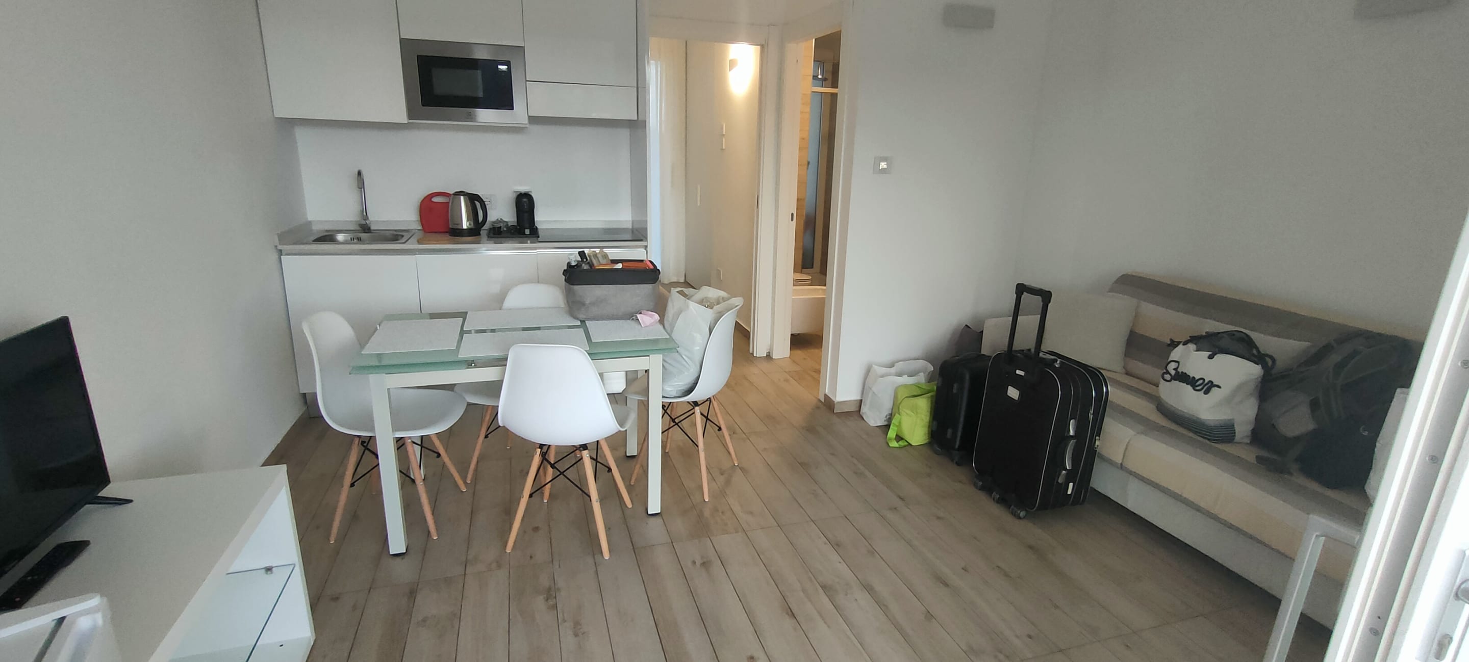 Wohnküche,mit Spülmaschine,Kaffeetapsmaschine (Taps an der Rezeption erhältlich),Toaster,Mikro,Wasserkocher,Kühlscgrank mit kl. Eisfach. Töpfe,Geschirr und jegliches Besteck. Alles was man braucht