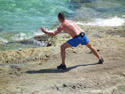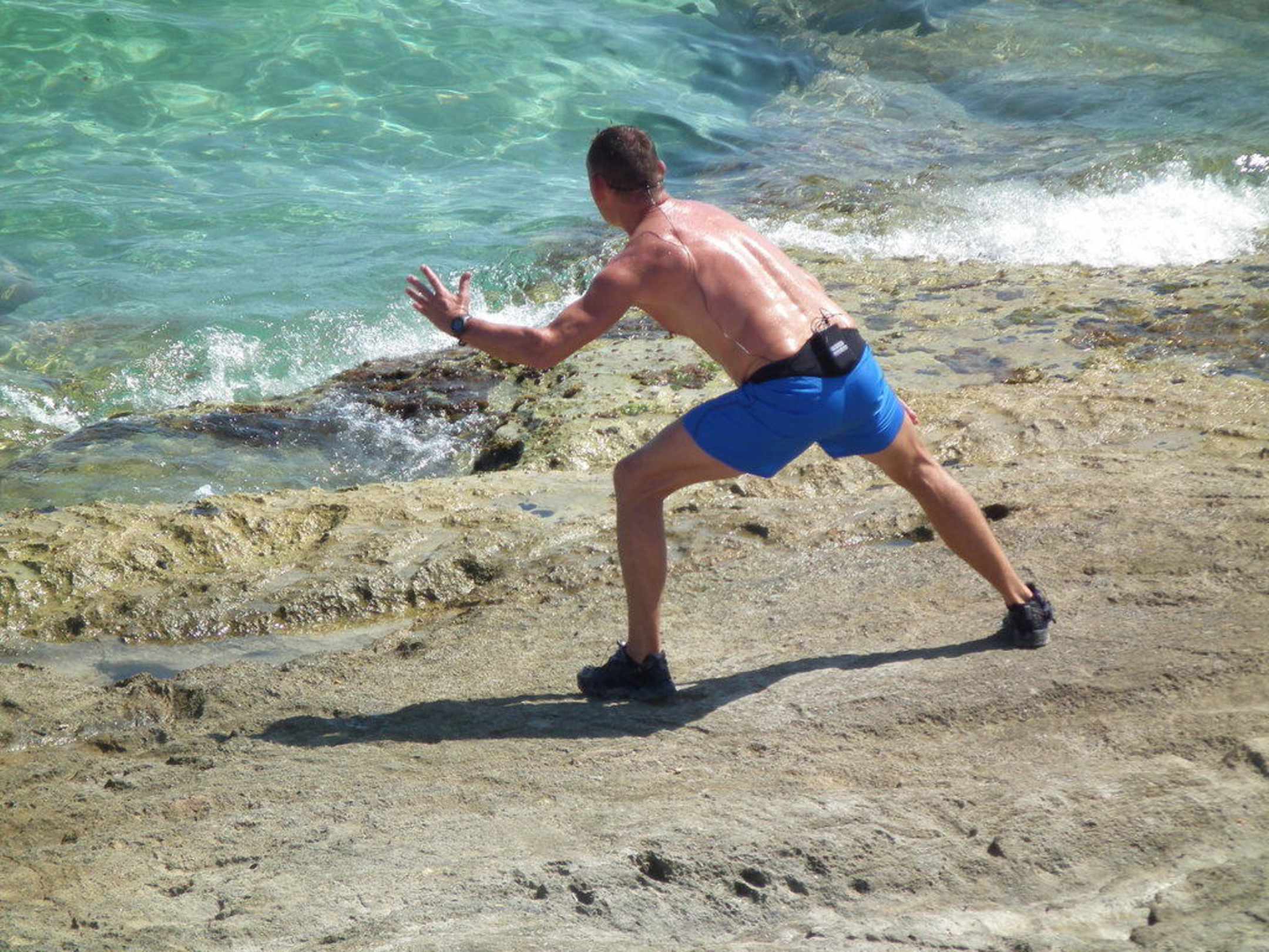 Personaltrainer bei der ArbeitAnleitung zum Aquatraining im Meer.