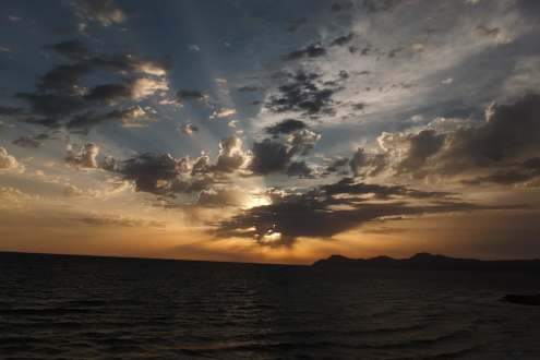 Ausblick am Morgen auf Meer und Sonne