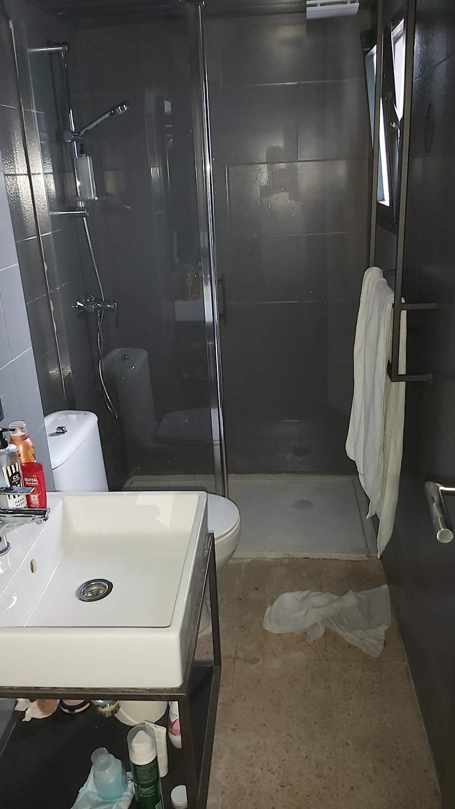 Nasszelle, die Dusche läuft gern über